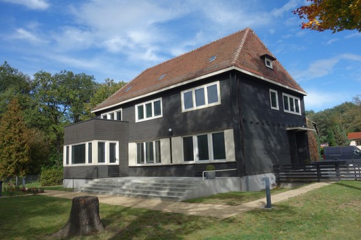 - Im Rahmen des Umbaus und der Sanierung des, sich in Privatbesitz befindlichem, Bahnhofs in Tharandt erfolgte die Ertüchtigung des historischen Portales und der hinteren Wartehalleneingangstür unter denkmalpflegerischen Aspekten. Die aus der Bauzeit um 1855 stammenden doppelflügeligen Rahmen-Füllungstüren bestechen optisch durch ihre für die Epoche typischen aufwendigen Verzierungen und Schmuckelemente. Im Zuge der Restaurierung erfolgte eine bestandsbewahrende, holztechnische Instandsetzung sowie eine Oberflächenüberarbeitung inklusive Ergänzung von Sicherheitsbeschlägen und neuer Verglasung mit Restaurierungsglas. Substanziell wies die Türe nach Entschichtung der Oberfläche einen wesentlich schlechteren Holzzustand auf als zu Beginn vermutet. Es zeigten sich diverse Bearbeitungsspuren der letzten Jahrzehnte sowie Risse, Bruch- und Fehlstellen, die mit unterschiedlichen Spachtelmassen verschlossen und überstrichen waren. Kittmaterialien im Bestand wurden fachgerecht entfernt, Risse neu verleimt und Holzfehlstellen konstruktiv ergänzt. Zusätzlich erfolgte eine Verbesserung des konstruktiven Wetterschutzes sowie der Anbau von historisierenden Drückergarnituren die das optische Gesamtbild komplimentieren. Die Farbgestaltung der Türen ist nach dem ältestem Befund hergestellt.