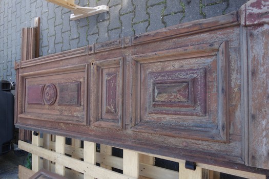 - Im Rahmen des Umbaus und der Sanierung eines sich in Privatbesitz befindlichem Mehrfamilienhaus in Berlin erfolgte die Ertüchtigung der historischen Hauseingangstür unter denkmalpflegerischen Aspekten. Die aus der Gründerzeit stammende doppelflügelige Rahmen-Füllungstüre besticht optisch durch ihre für die Epoche typischen aufwendigen Verzierungen und Schmuckelemente. Im Zuge der Restaurierung erfolgte eine bestandsbewahrende, holztechnische Instandsetzung sowie eine Oberflächenüberarbeitung inklusive Behandlung der Beschläge und Glasflächen. Substanziell wies die Türe nach Entschichtung der Oberfläche einen wesentlich schlechteren Holzzustand auf als zu Beginn vermutet. Es zeigten sich diverse Bearbeitungsspuren der letzten Jahrzehnte sowie Risse, Bruch- und Fehlstellen, die mit unterschiedlichen Spachtelmassen verschlossen und überstrichen waren. Kittmaterialien im Bestand wurden fachgerecht entfernt, Risse neu verleimt und Holzfehlstellen konstruktiv ergänzt. Zusätzlich erfolgte eine Verbesserung des konstruktiven Wetterschutzes durch Anbringen einer Höckerschwelle.Die Bestandsglasscheiben der Füllungen aus jüngerer Zeit wurden durch historische, der Entstehungszeit entsprechendes Ornamentgläser ersetzt, sowie eine rekonstruierte Drückergarnitur das optische Gesamtbild komplimentiert. Die Farbgestaltung der Tür ist an das Farbkonzept des Hauses angepasst.