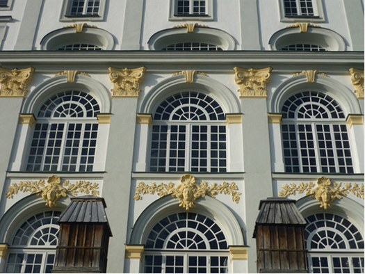 - Holztechnische Konsolidierung und Rekonstruktion der Fassade und der Fenstereinfassungen