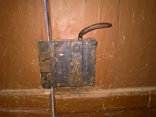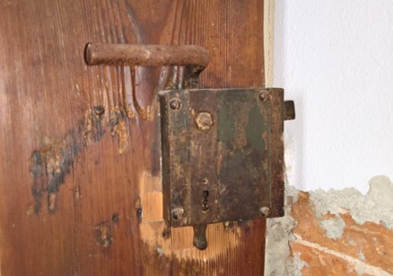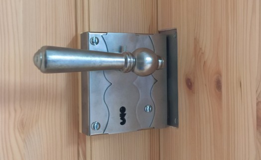 - Einbau eines Panikschlosses kombiniert mit der historischen Drückergarnitur